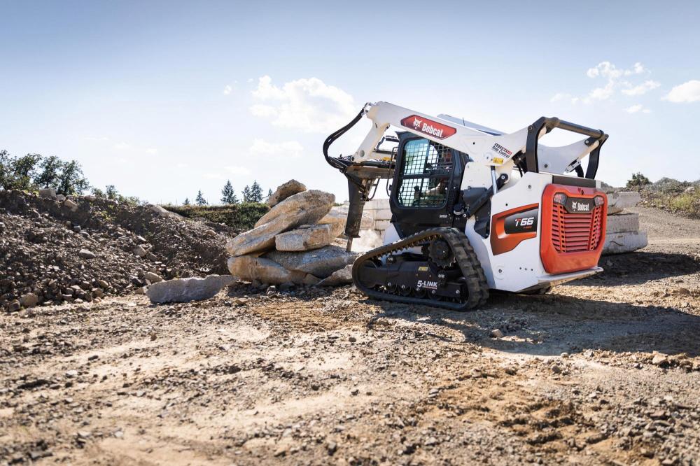 No matter how extreme your working conditions, the vertical-lift-path Bobcat® T66 compact track loader pushes through to do more in all kinds of applications and keeps working where other equipment can’t. Also referred to as a skid-steer with tracks, the T66 includes a redesigned Bobcat inline engine and direct-drive system, lift arms with cast-steel construction and improved cooling performance.
